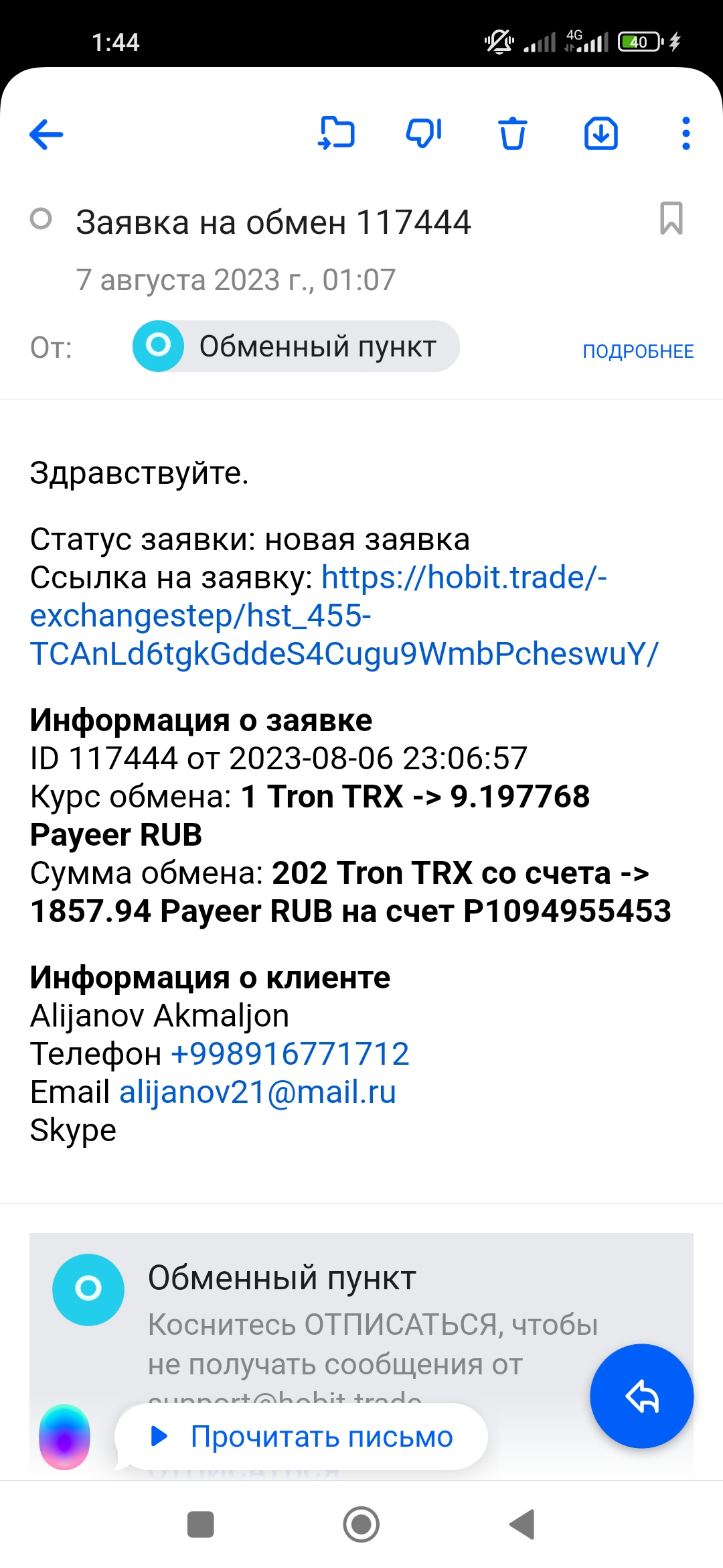 Dio una solicitud para intercambiar trx para rub. Transferido 200trx, pero por desgracia no hay dinero no trx en general todo el arsenal de estafa. No le aconsejo que utilice este exchanger